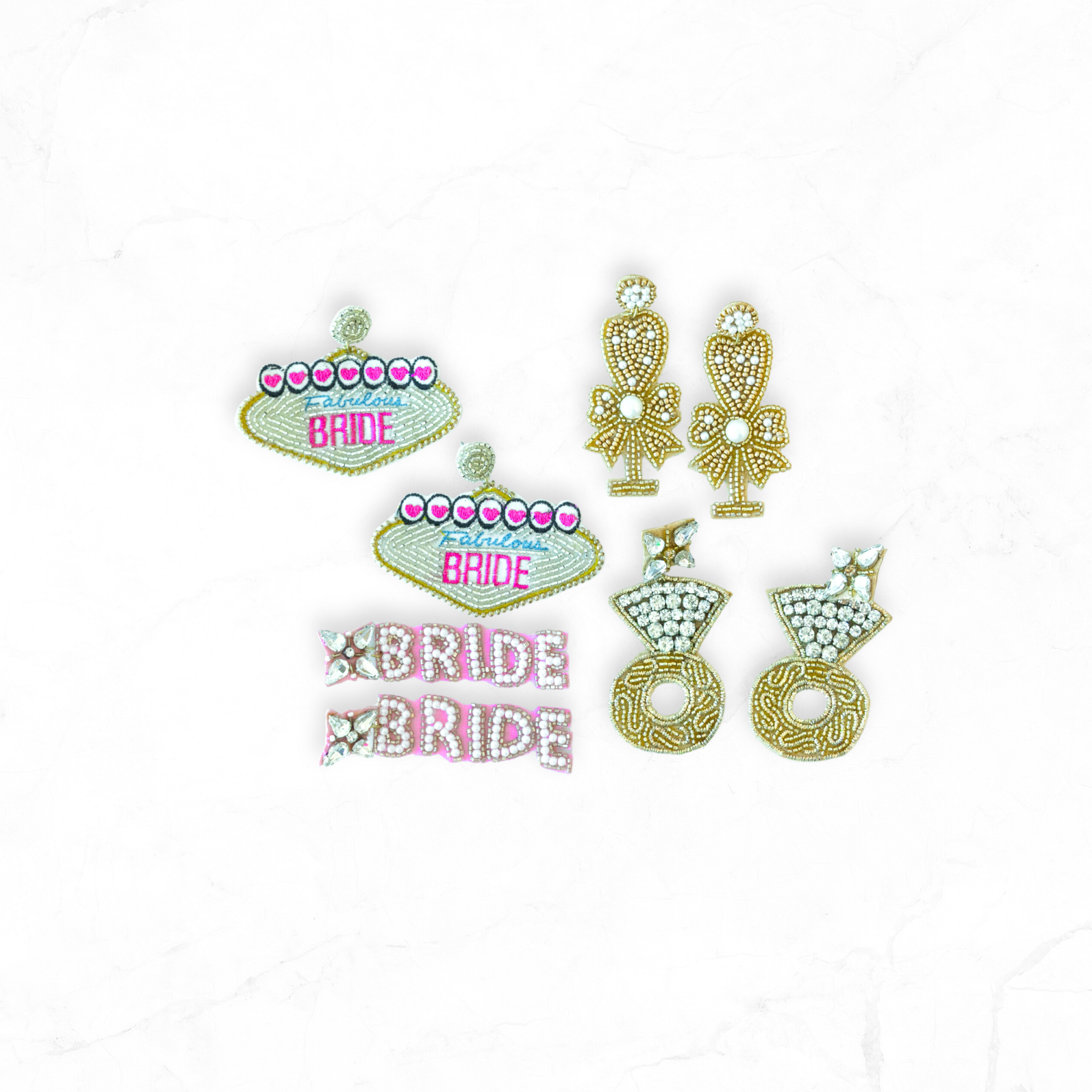 Show off that engagement glow with earrings as exciting as your news. These Engagement Ring Beaded Earrings feature intricate beadwork that mirrors the sparkle of your new rock, making them the ideal companion piece for celebrating your "yes." Playful yet elegant, they're perfect for flashing at brunch, the office, or anywhere you want to subtly (or not so subtly) show off your newly engaged status. Because sometimes your ears deserve to celebrate too.