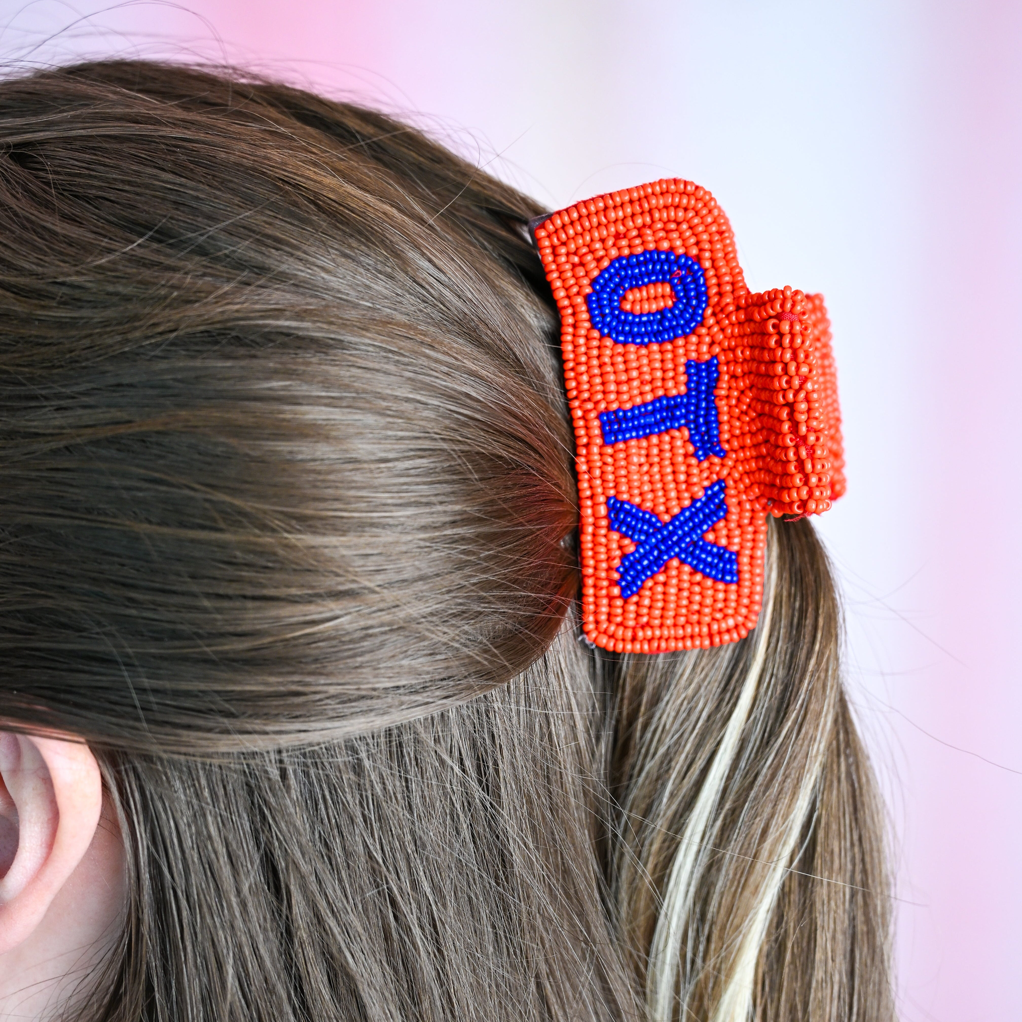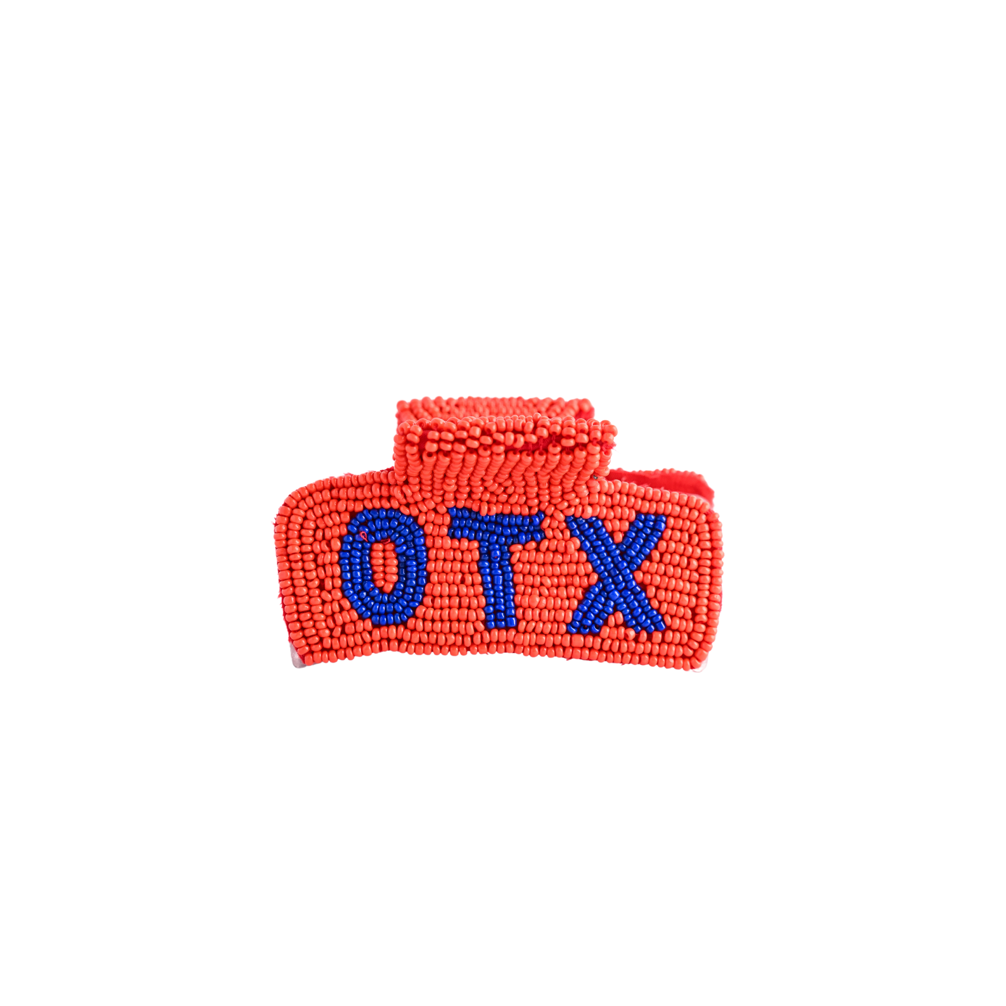 Keep your hair secure and stylish with this beaded claw clip, the perfect accessory for Camp OTX enthusiasts. Featuring vibrant beadwork that celebrates camp spirit, this durable clip holds hair firmly in place while adding a pop of color to any summer look. Lightweight and comfortable for all-day wear, it's an ideal companion for outdoor adventures, poolside hangouts, and everything in between. Show your camp pride wherever you go!