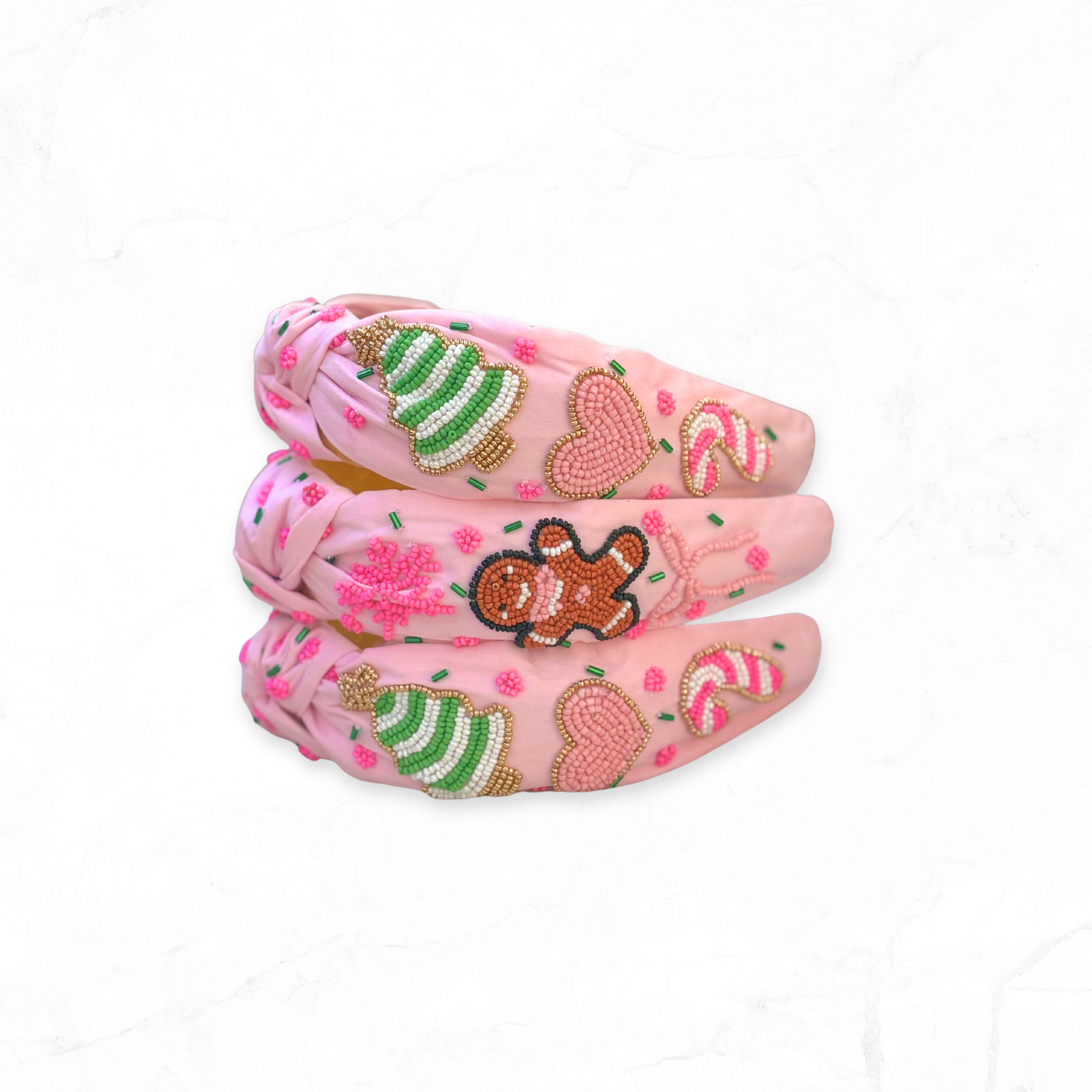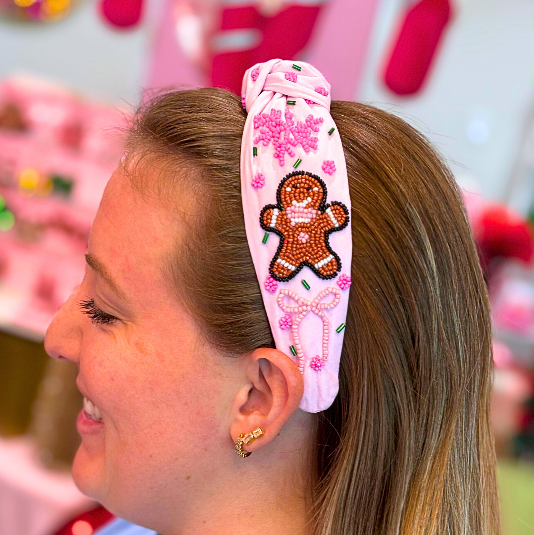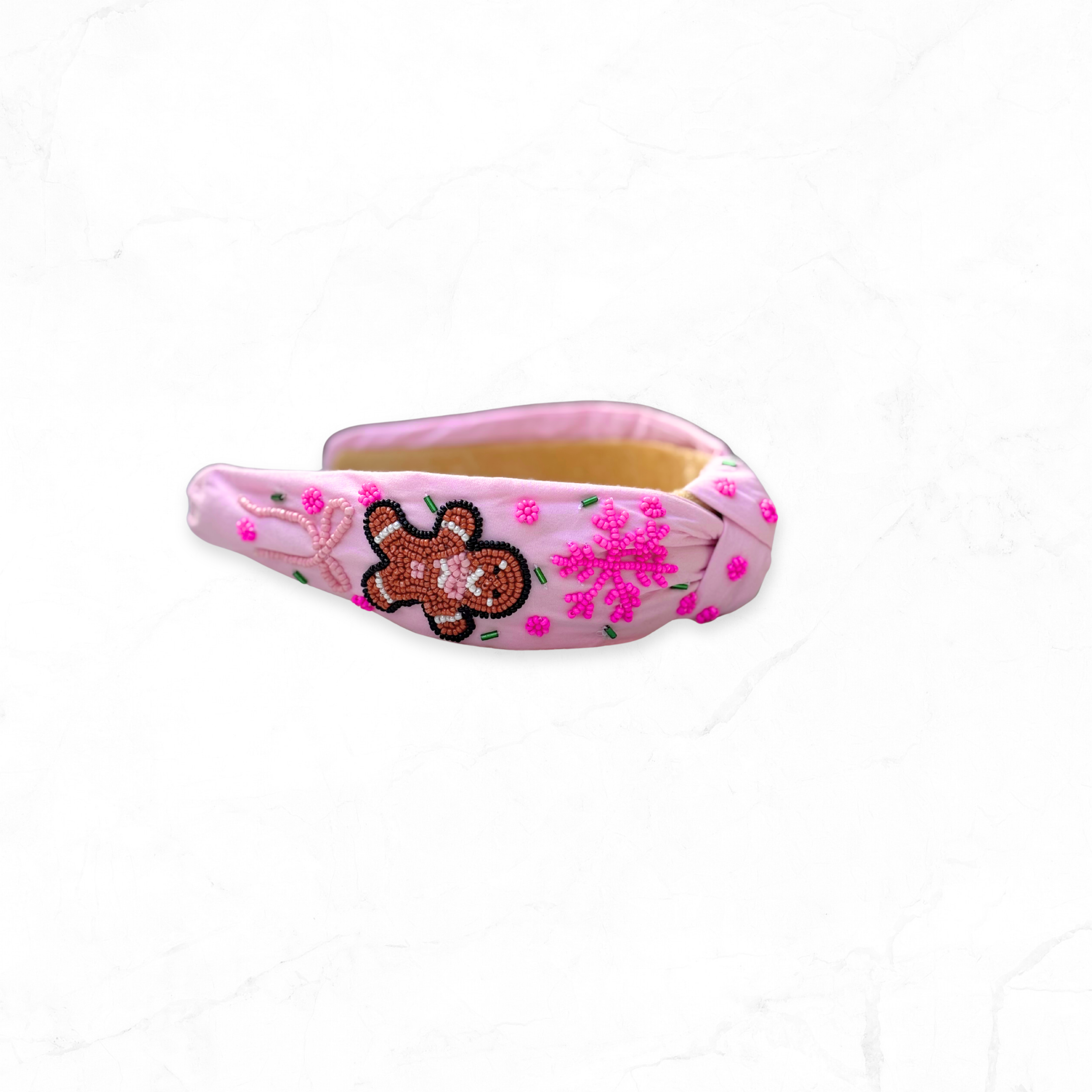 Get ready to turn heads with this delightfully sweet Pink Gingerbread and Candy Cane Headband! Combining two holiday favorites in one adorable accessory, it features charming gingerbread details paired with classic candy cane stripes in pretty pink tones. Whether you're baking up treats, attending a festive gathering, or just spreading seasonal cheer, this headband keeps your hair in place while adding major holiday personality. Comfortable, quirky, and utterly Instagram-worthy—your festive look just got a whole lot more fun!