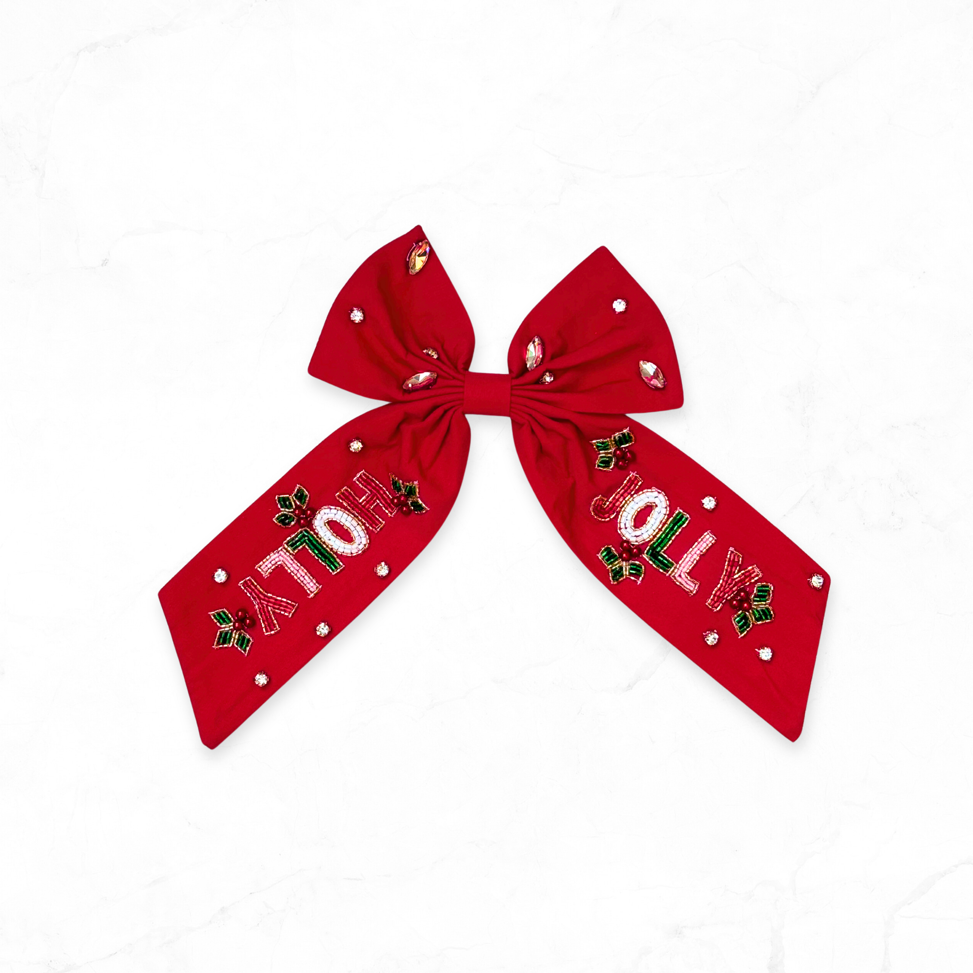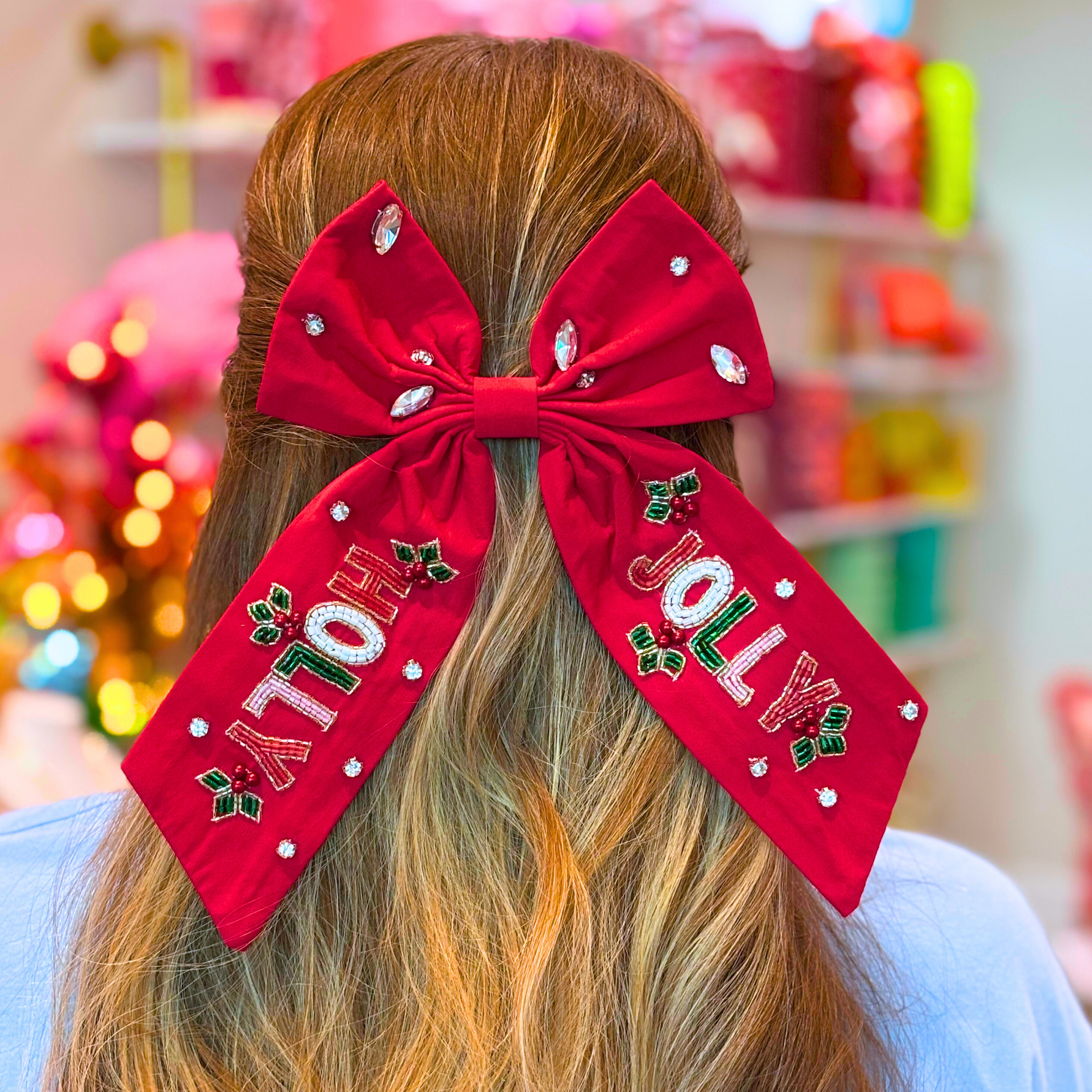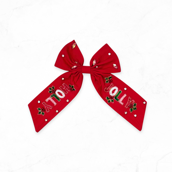 Spread holiday magic with this vibrant Red Holly Jolly Hair Bow! Bursting with festive spirit, this cheerful accessory features bold red tones and holly-inspired details that capture the essence of the season. Perfect for adding instant holiday pizzazz to any hairstyle, it's ideal for parties, family gatherings, or whenever you want to celebrate in style. Lightweight and easy to wear, this bow brings joy and personality to your look—because the holidays deserve a little extra sparkle!
