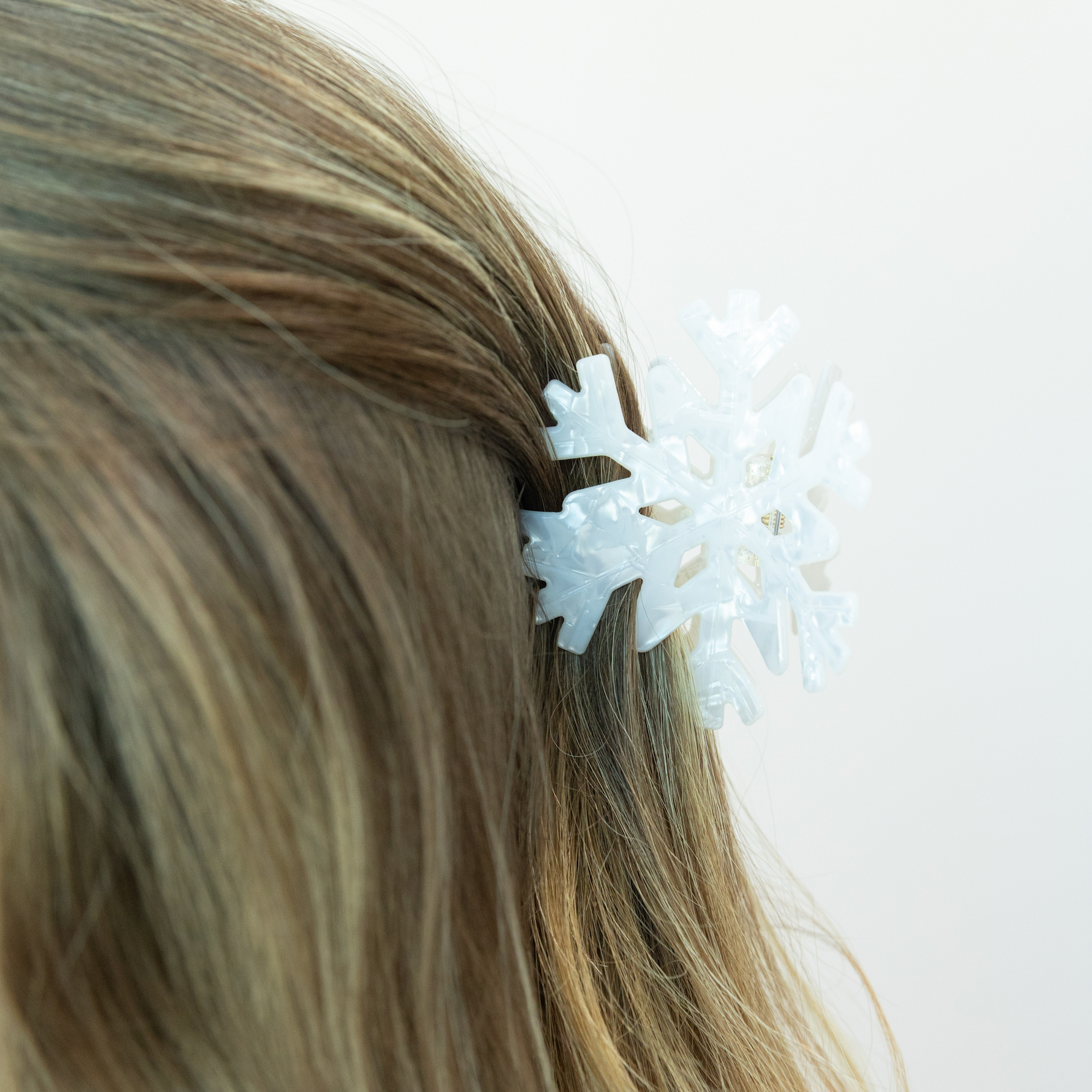 Catch the magic of winter with this enchanting Snowflake Claw Clip! Featuring an intricate snowflake design, this charming accessory adds a frosty sparkle to any hairstyle. Perfect for bundling up your locks during chilly seasons or bringing a touch of seasonal whimsy year-round, this clip combines style with practicality. The secure claw grip keeps your hair in place all day, while the delicate snowflake pattern makes every updo feel like a winter wonderland moment. Whether you're heading to the slopes or just embracing cozy vibes, this clip is your new cold-weather essential.