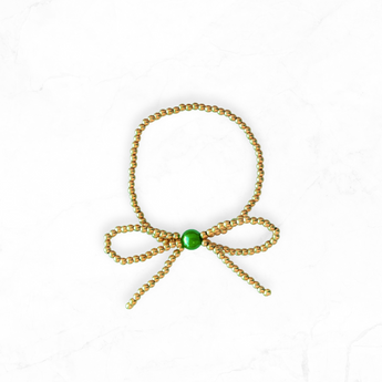 A bow so cute it deserves its own spotlight! With gold beading and a festive green pearl, this bracelet ties your whole holiday look together — literally.