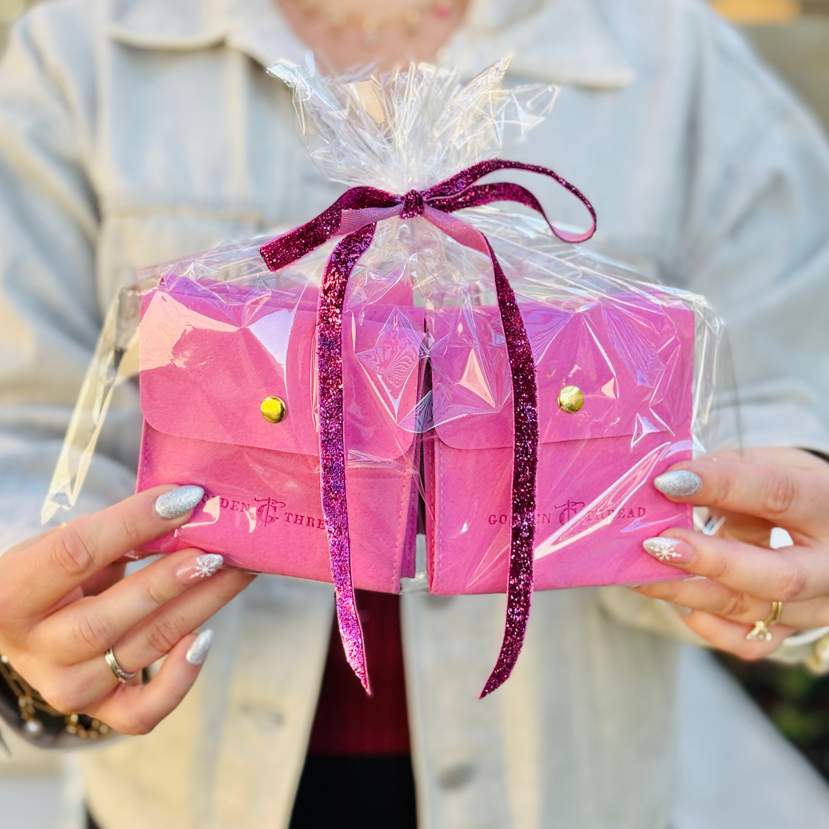 All advent calendar orders placed after Nov 24th will receive this updated advent calendar style. Includes individual jewelry pouches packaged in a cellophane bag. While the packaging has changed, the 24 exclusive Golden Thread pieces inside are exactly the same beautiful items you selected. Packed with $300 worth of GT sparkle!