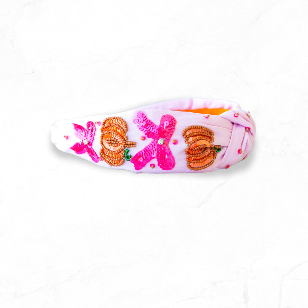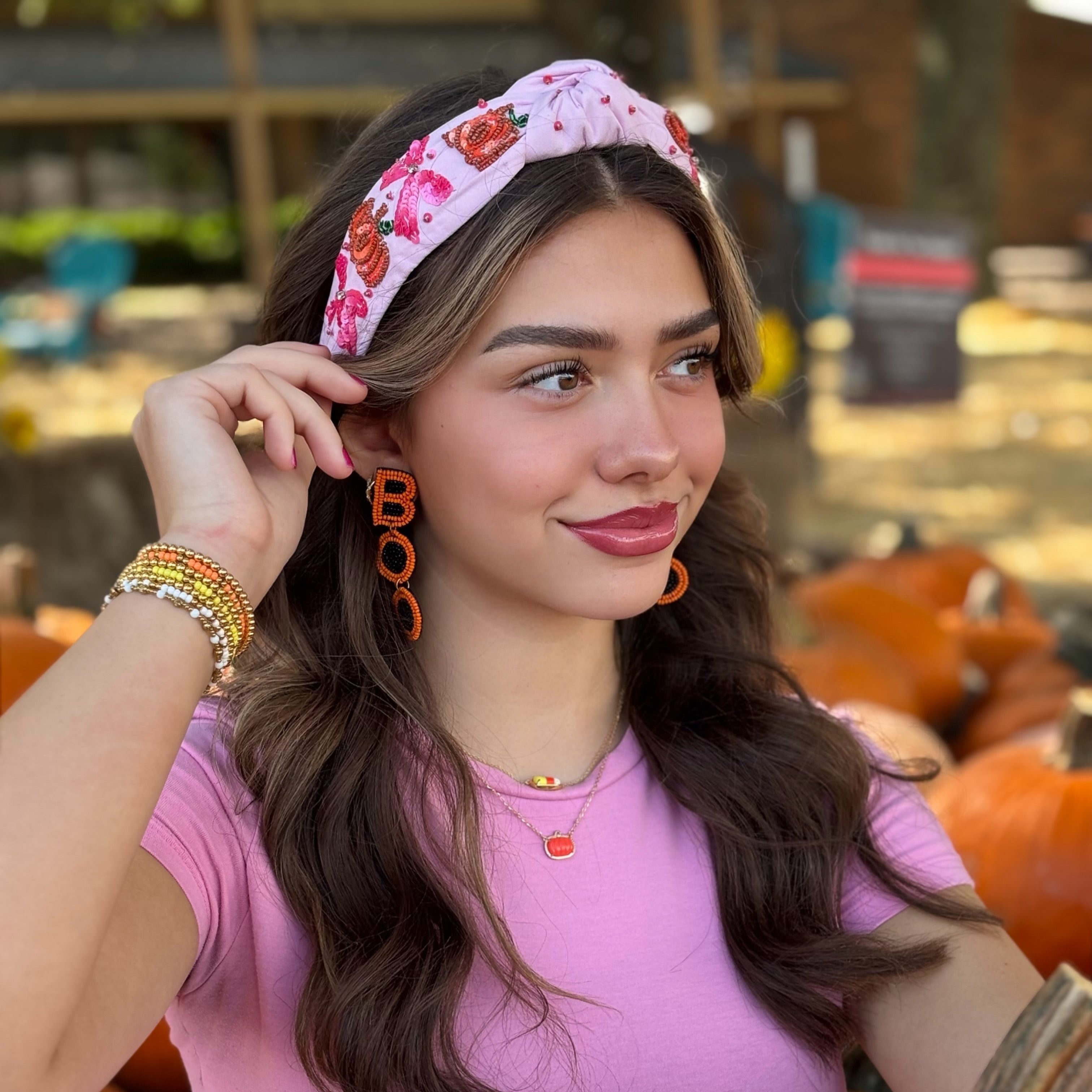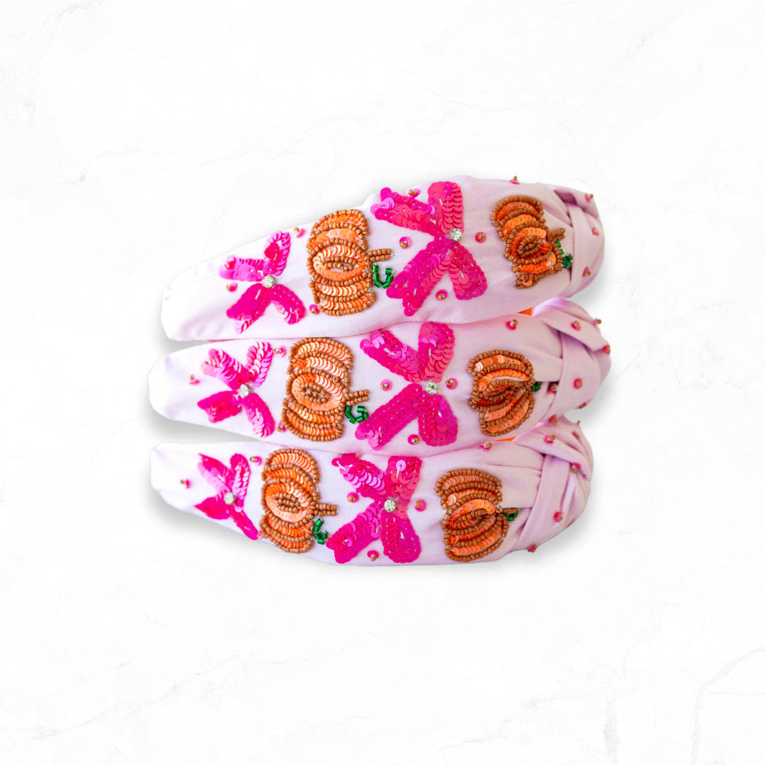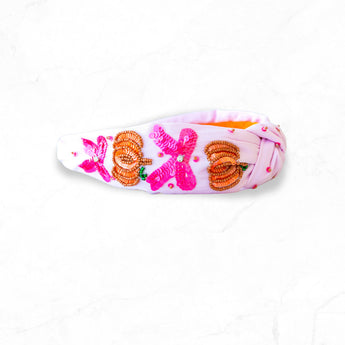 Sparkle and shine this season with the Bows + Pumpkins Beaded Headband! Featuring dazzling sequins and charming beaded pumpkins, this playful accessory adds a festive touch to any Halloween outfit. Comfortable and eye-catching, it’s perfect for parties or everyday fun during the spookiest time of year.