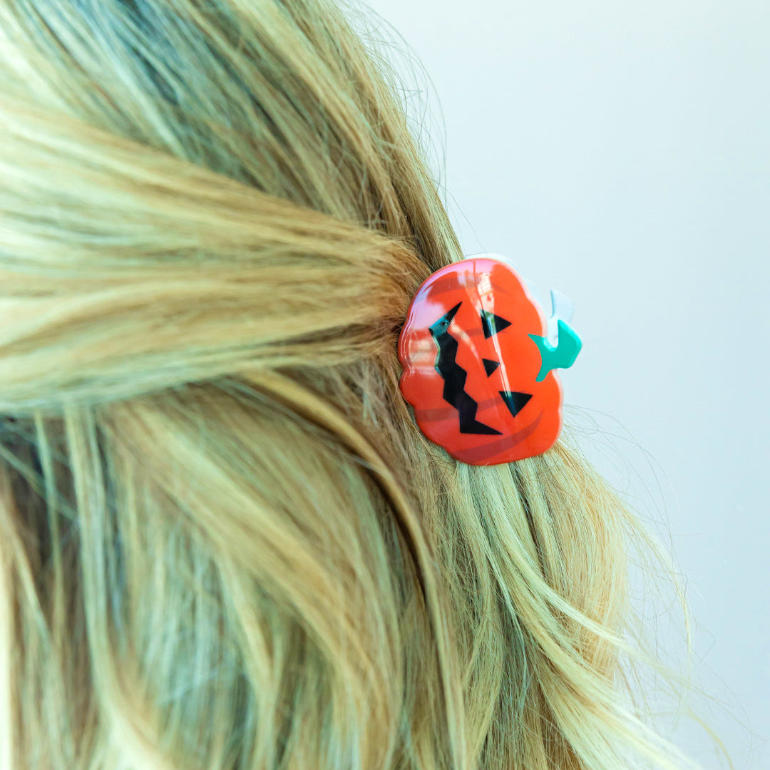 Add a touch of Halloween fun with the Mini Jack O Lantern Claw Clip! This cute accessory features a classic jack-o’-lantern design, perfect for bringing playful spooky vibes to any hairstyle. Small and comfy, it’s an easy way to celebrate the season with a pop of festive charm.