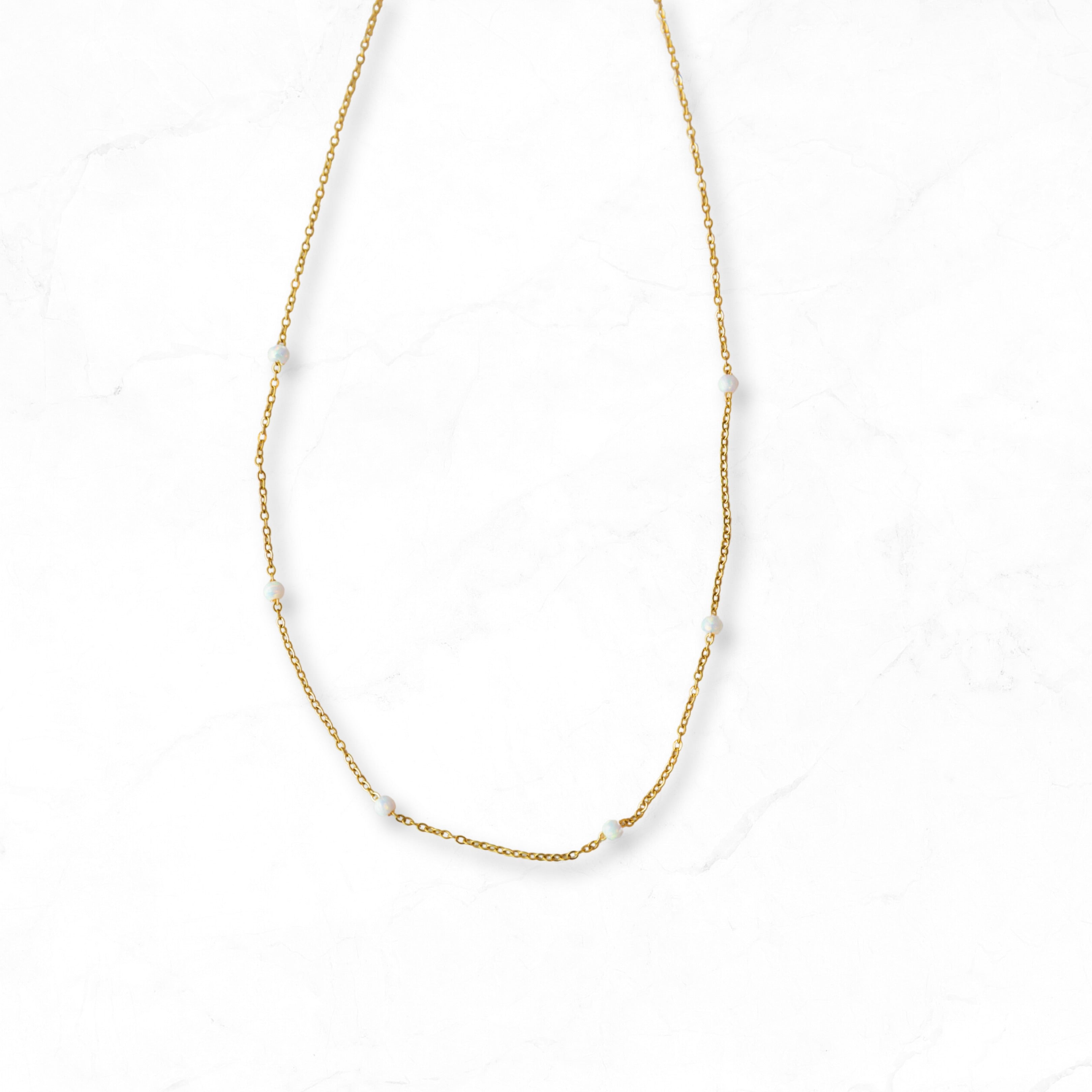 Catch the light and turn heads with this stunning Opal Gold Chain Necklace. Delicate gold chains frame mesmerizing opal stones that dance with rainbow fire, creating an eye-catching piece that's equal parts elegant and whimsical. Perfect for layering or wearing solo, this necklace brings a touch of magic to any outfit. Whether you're dressing up for a special occasion or adding sparkle to your everyday look, this beauty delivers serious style with a playful wink.