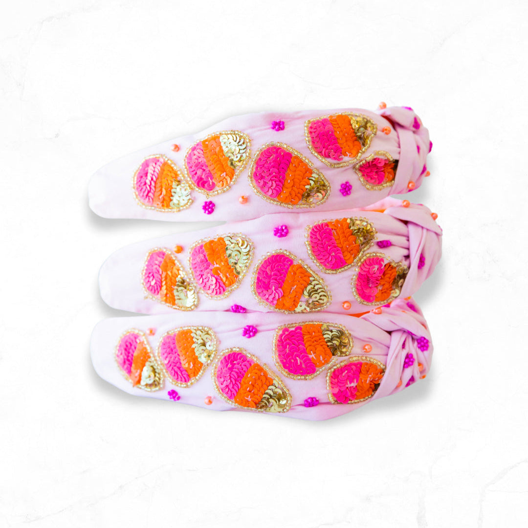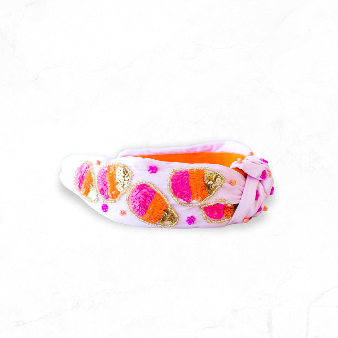 Bring a sweet sparkle to your Halloween look with this pink sequin candy corn headband! Covered in shimmering sequins, it adds a fun and festive touch that's perfect for parties or everyday fall flair. Lightweight and comfy, it’s the perfect way to brighten your costume or celebrate the season with a playful twist.
