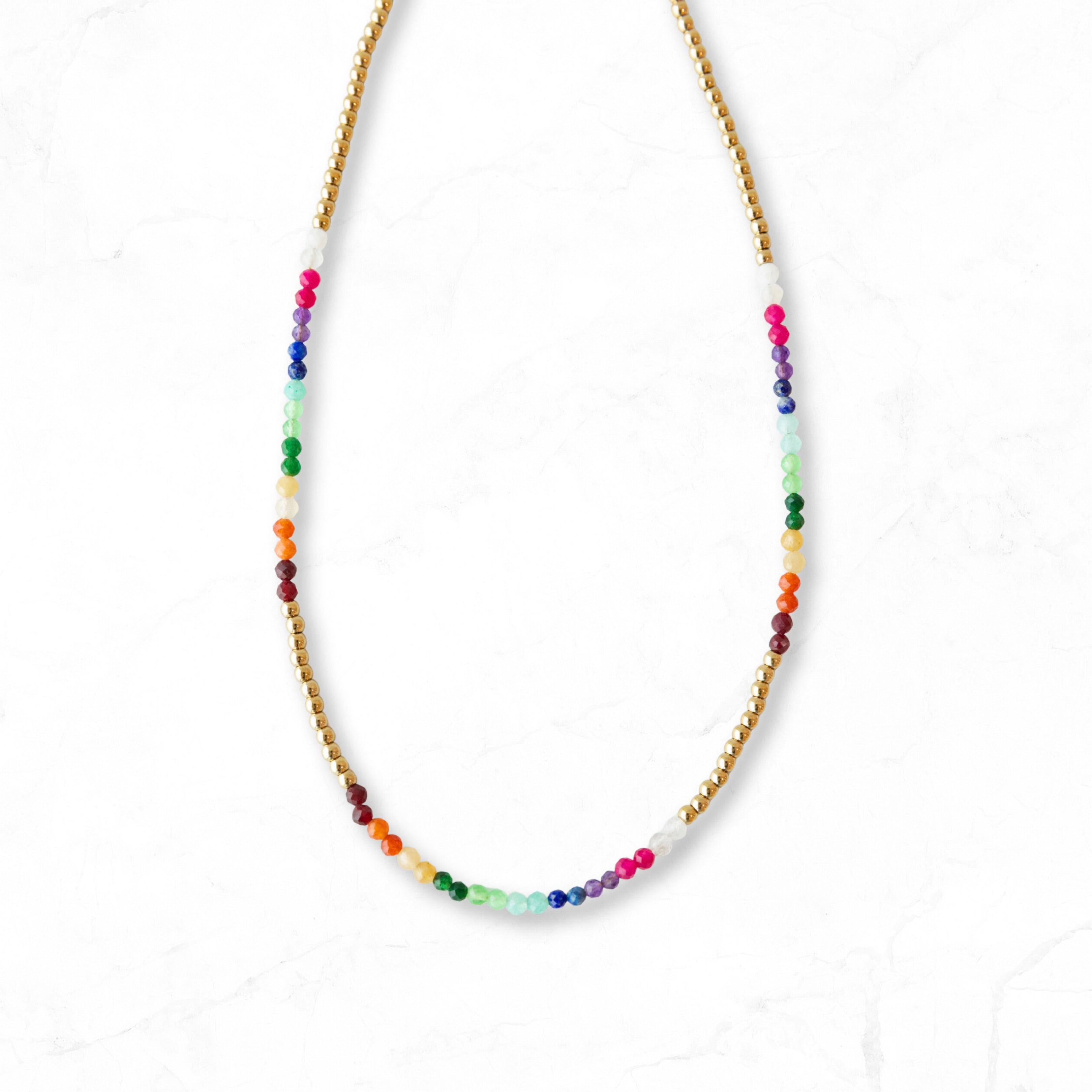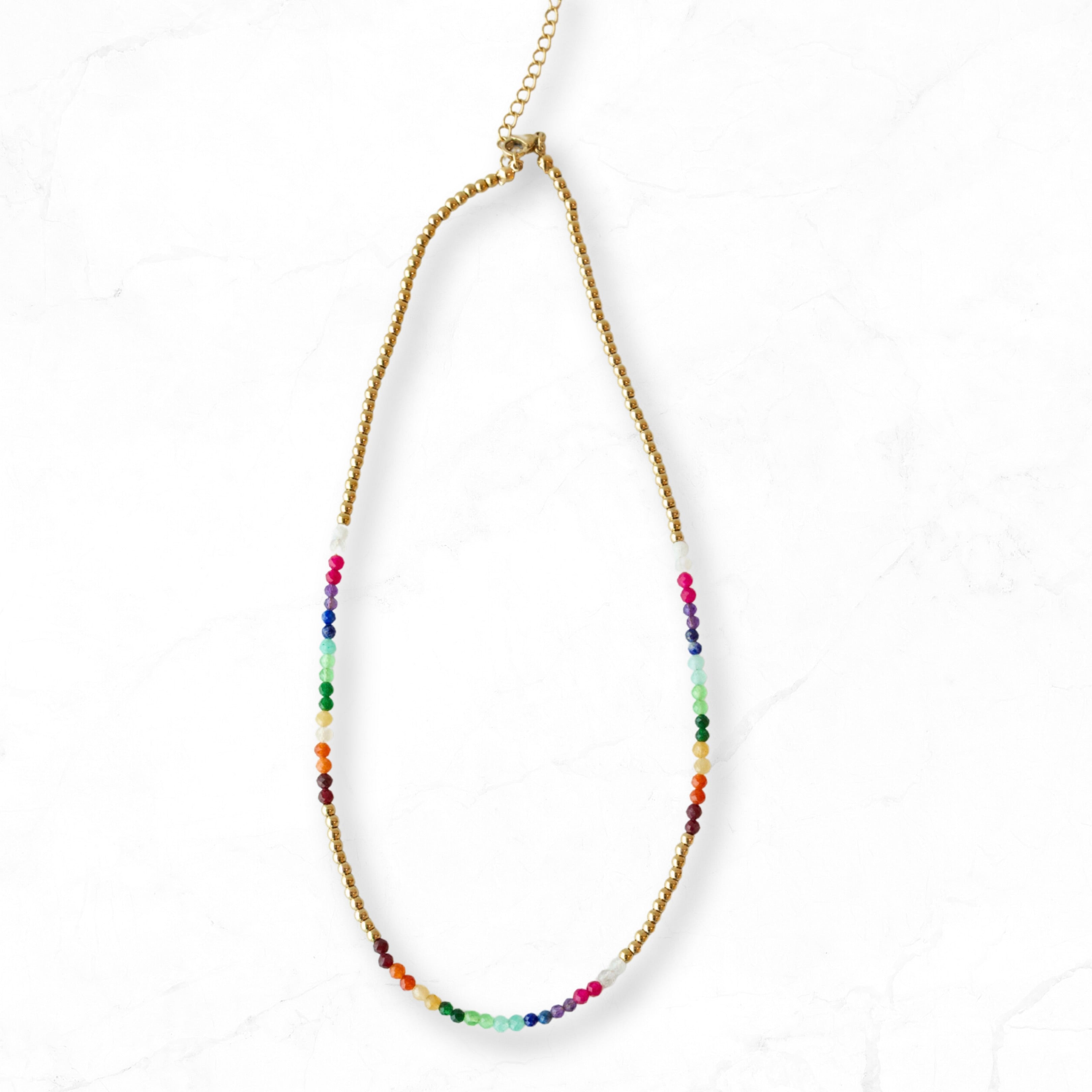 Rainbow Gemstone Gold Beaded Necklace