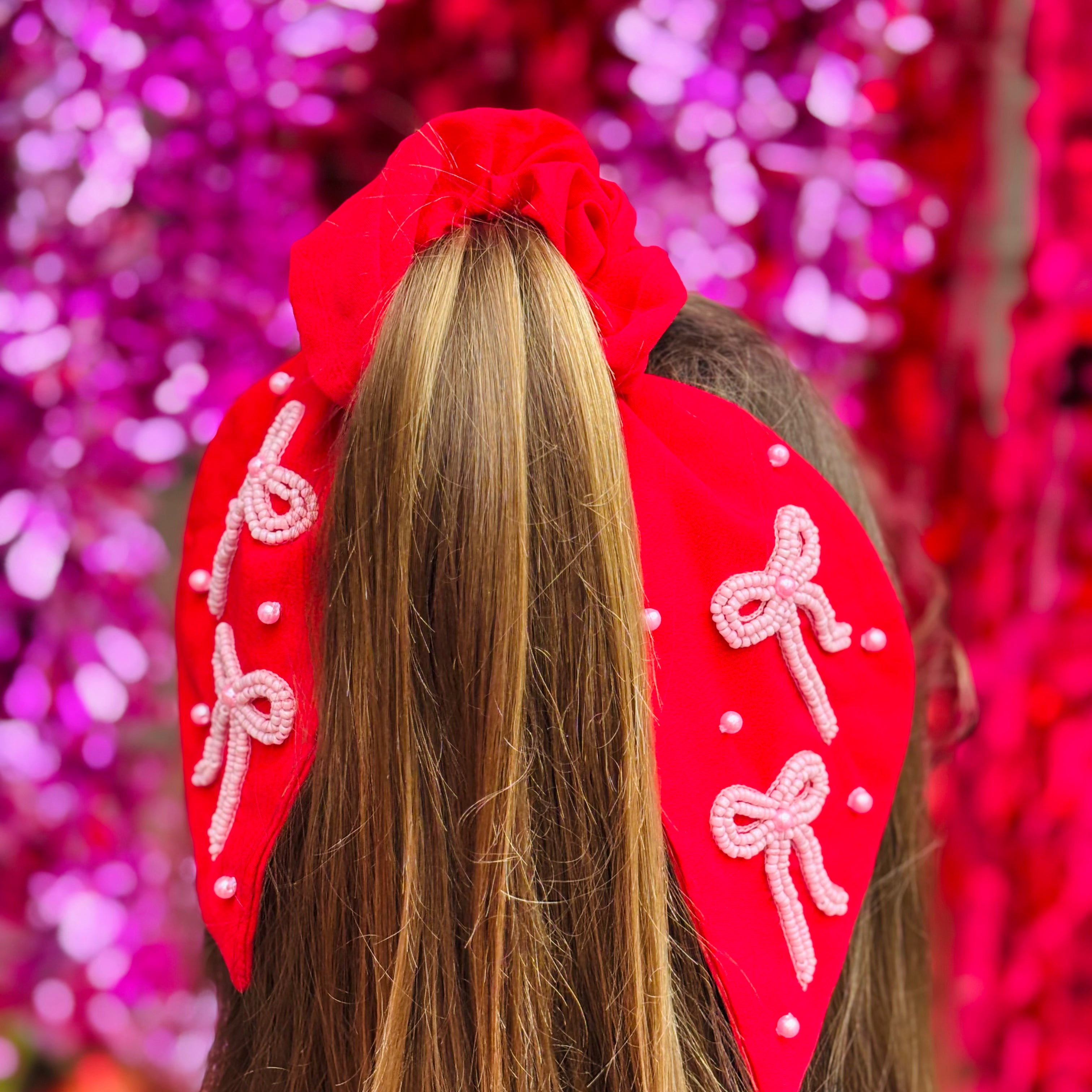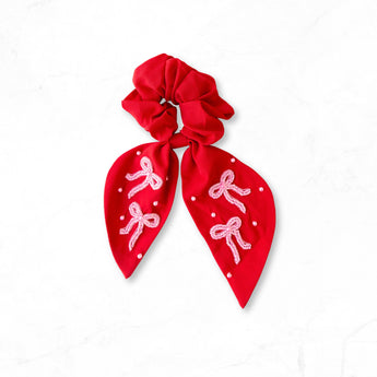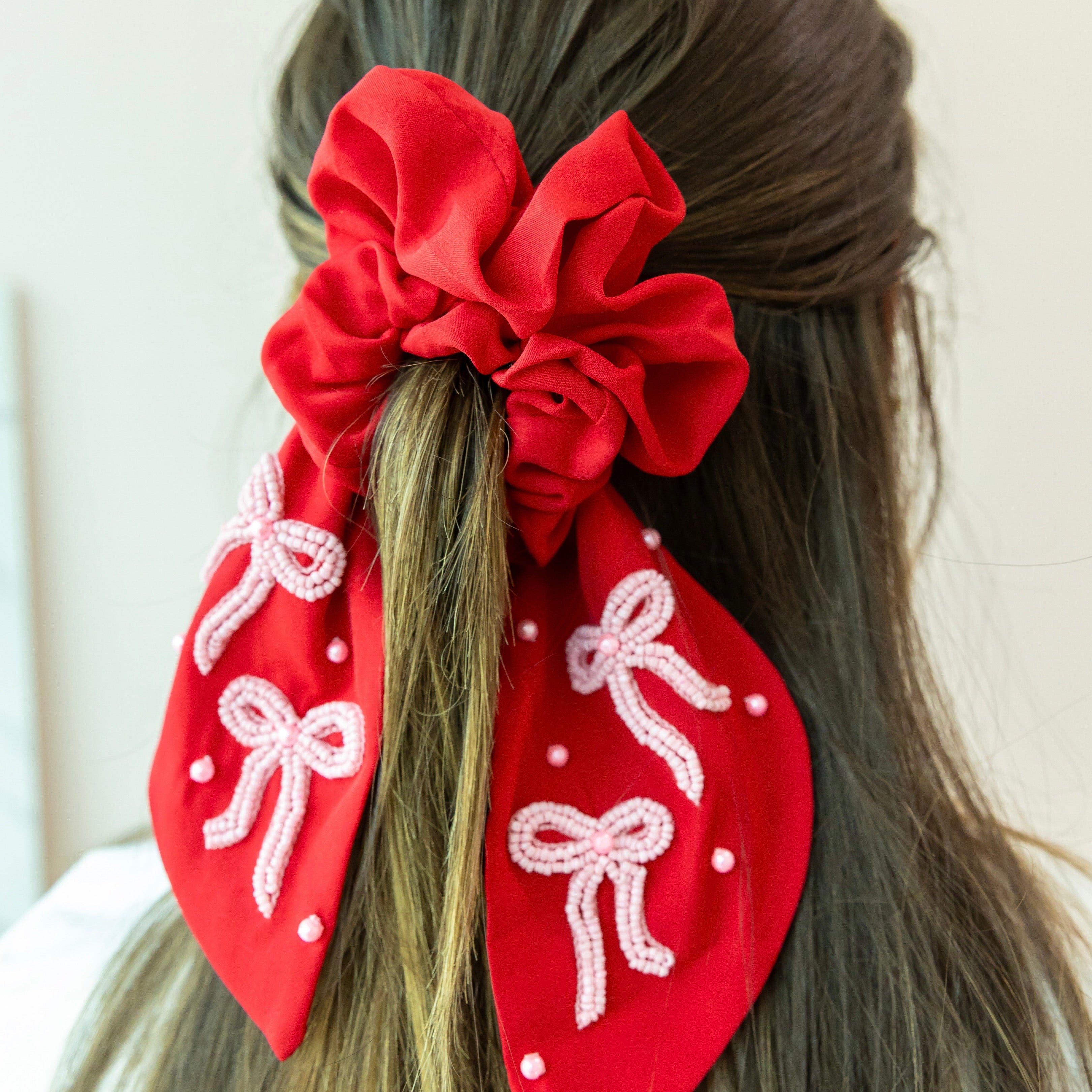 Add a pop of personality to your hair routine with this charming red scrunchie topped with a delicate pink bow. Perfect for securing ponytails, buns, or half-ups while bringing a touch of whimsy to your everyday look. The soft fabric keeps hair gentle and snag-free, making it ideal for all hair types. Whether you're heading to the office or out for a casual day, this playful accessory pairs effortlessly with any outfit and adds instant flair to your style.