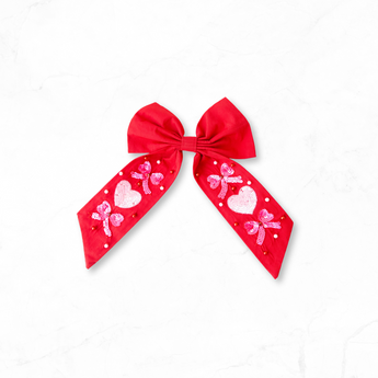 Red with Pink Heart Bow Hair Clip