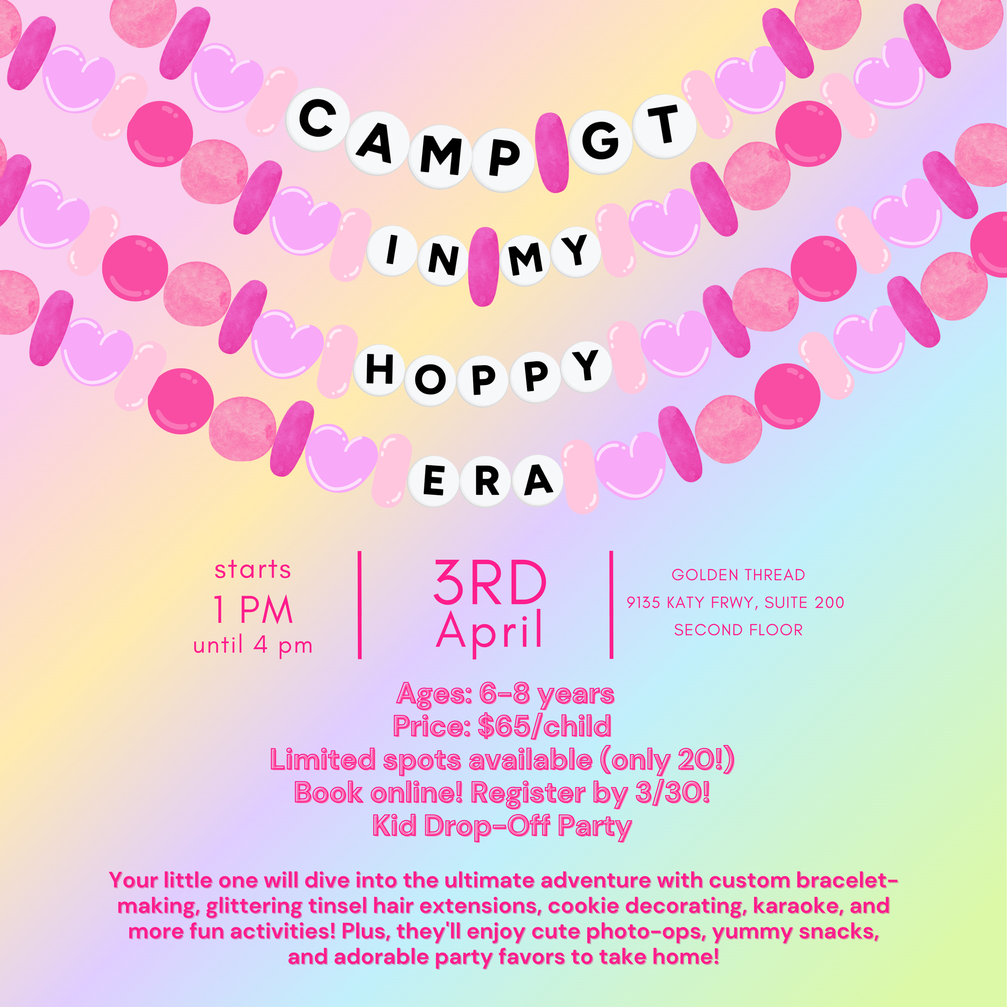 💖✨ Calling all girly girls! ✨💖 Get ready for the next CAMP GT!! The ultimate experience for little ones who love sparkles, beads, dancing, and fabulous fun! (And ideal for parents needing a few hours of kid-free bliss!) Sign up your little gal for a day packed with creativity and unforgettable memories! 🎀✨