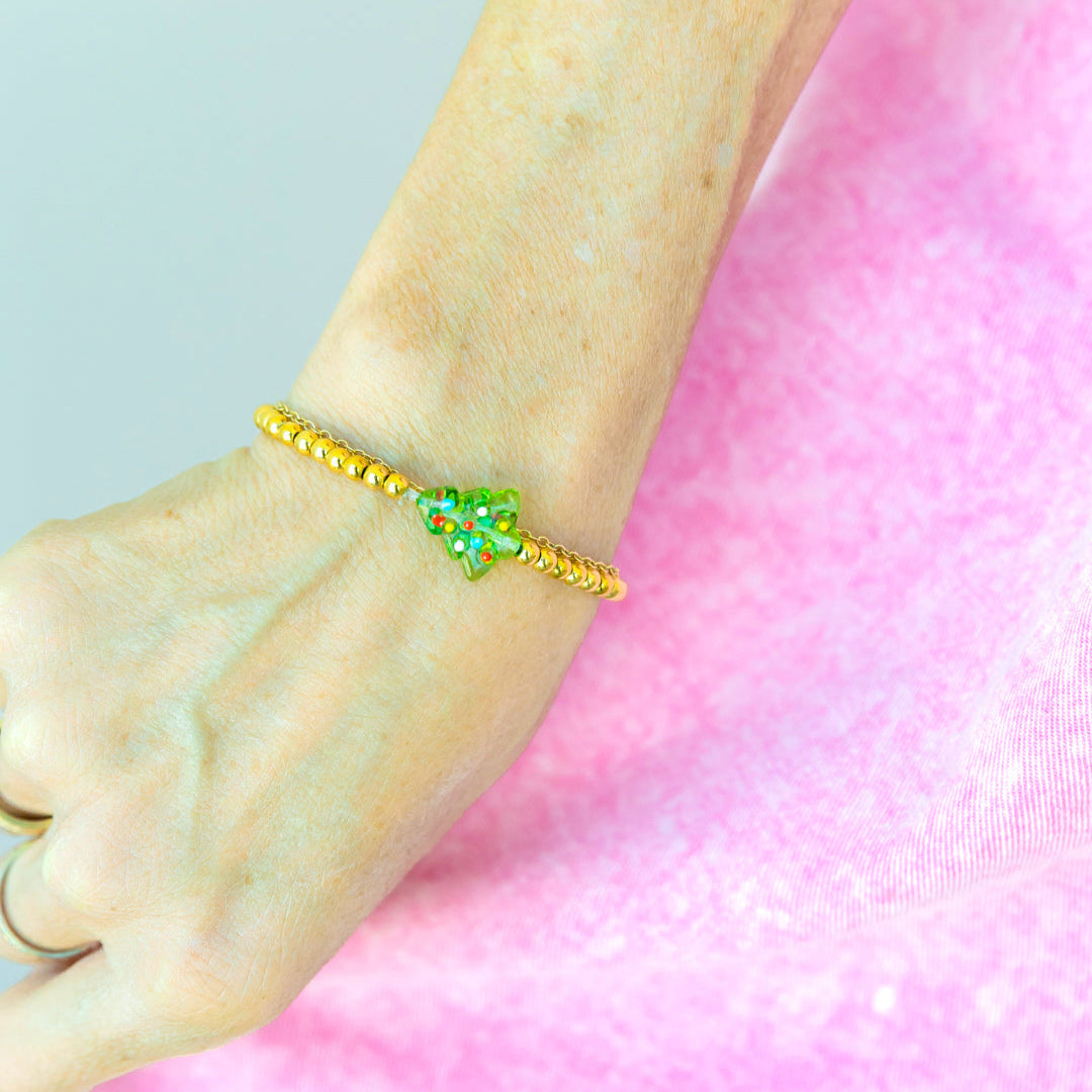 Add a sprinkle of holiday cheer with the Christmas Tree Gold Beaded Bracelet! Cute and festive, this charming bracelet suits all ages and brightens any outfit with its playful design and shiny gold beads that are stainless steel gold, waterproof, and hypoallergenic. Perfect for spreading seasonal joy wherever you go.