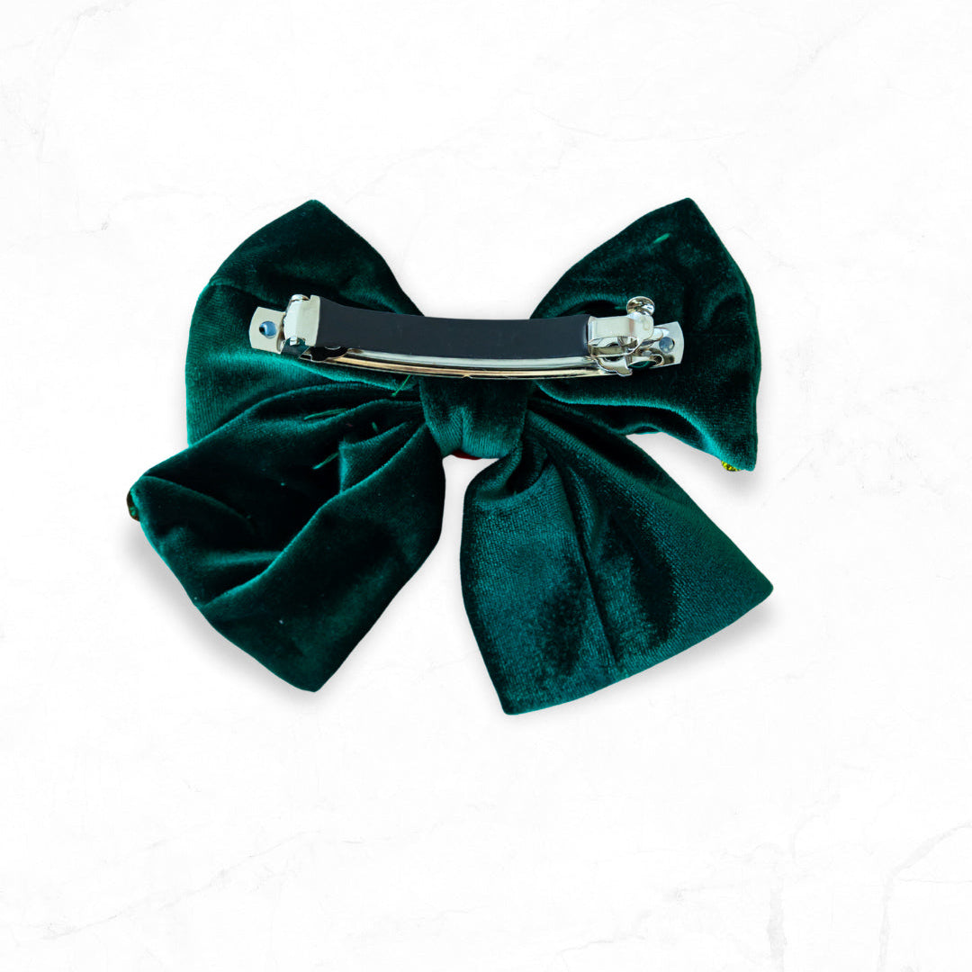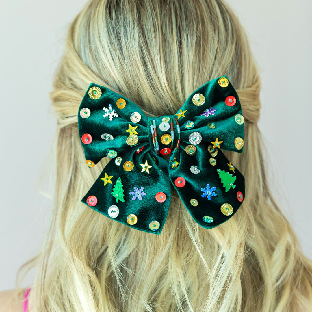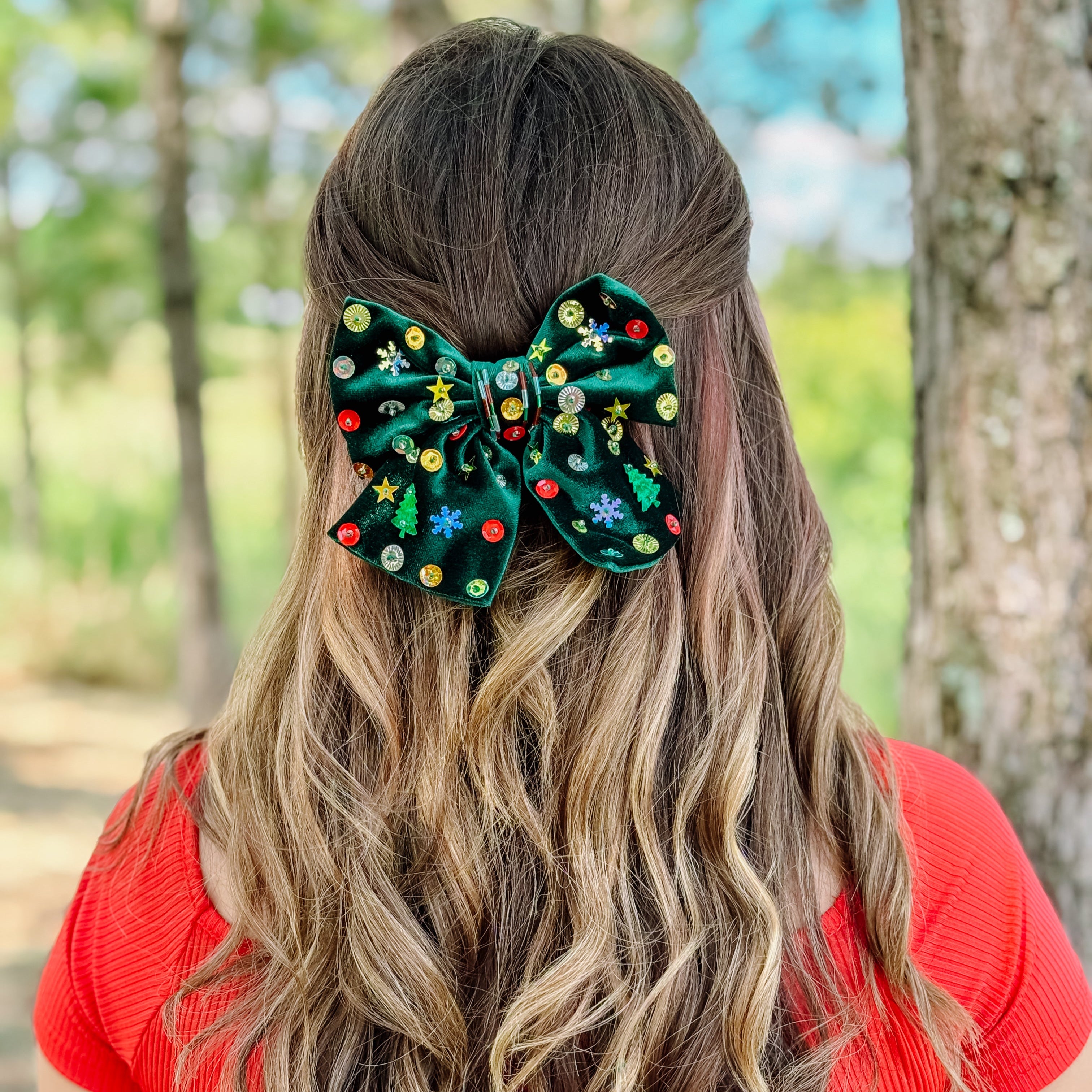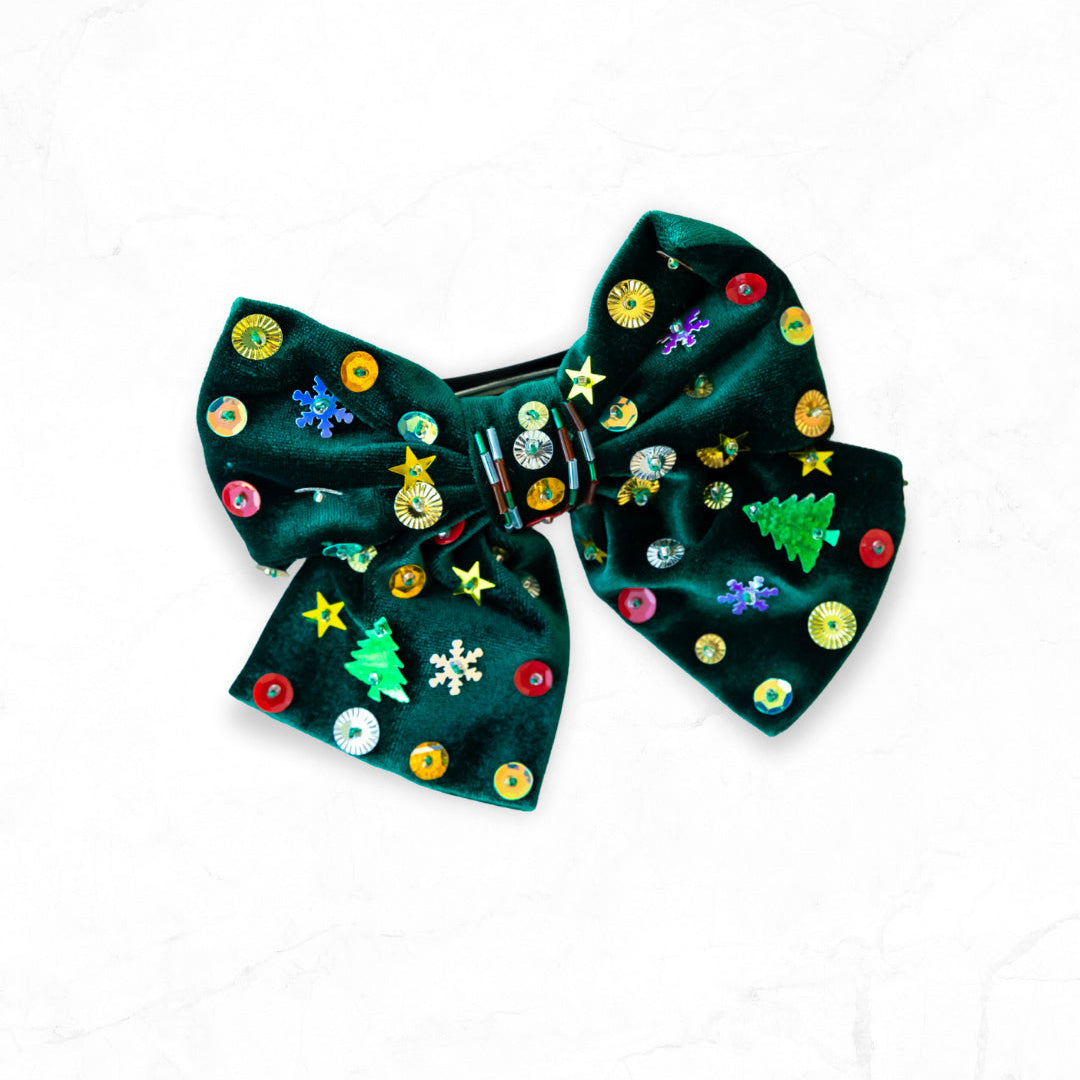 Add a festive touch to any outfit with this playful Green Velvet Christmas Bow hair clip. Its soft velvet texture and vibrant green shade instantly bring holiday cheer, making it the perfect accessory for parties or gift-giving. Easy to wear and comfy for all-day fun, this clip will have you jingling all season long!