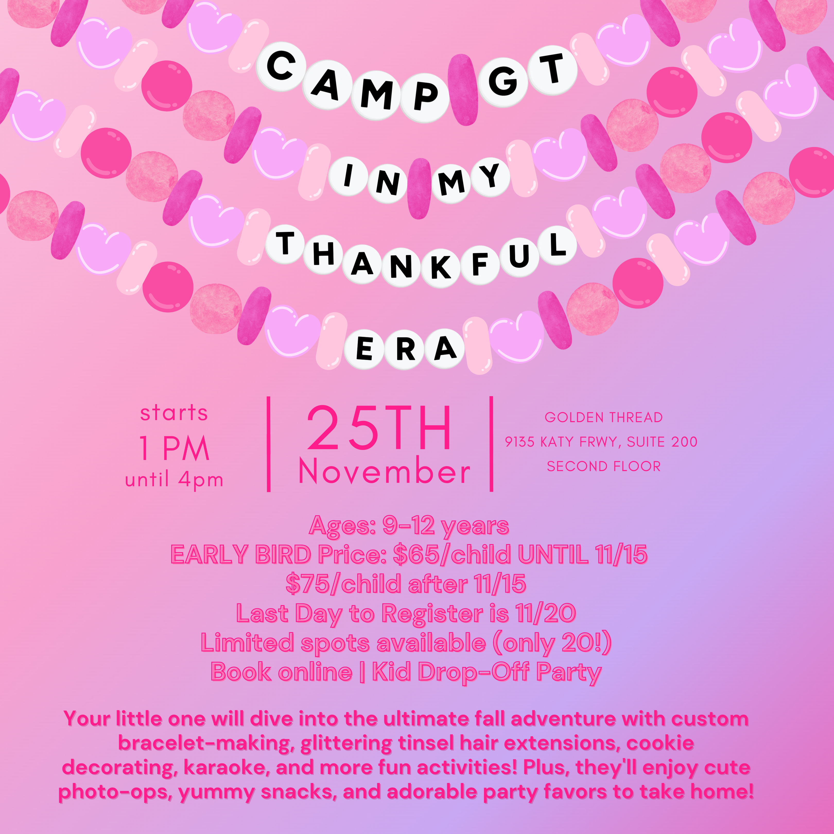 Your little one will dive into the ultimate fall adventure with custom bracelet-making, glittering tinsel hair extensions, cookie decorating, karaoke, and more fun activities! Plus, they'll enjoy cute photo-ops, yummy snacks, and adorable party favors to take home!