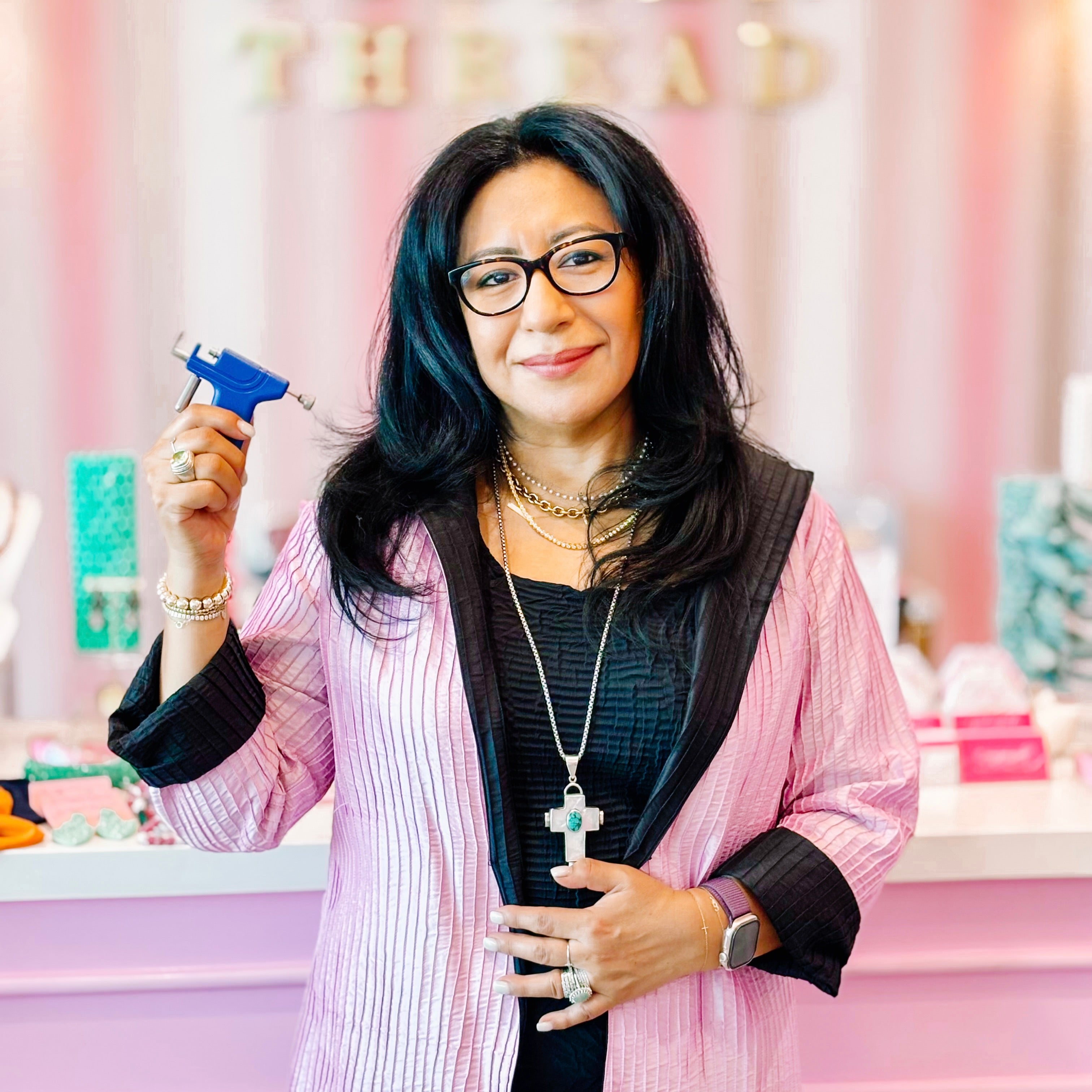 Cynthia has been part of the Golden Thread family for 14 amazing years. She first joined us as our on-site jeweler and engraver, crafting beautiful pieces with the sweetest attention to detail. Now, she’s bringing her incredible talent and warm spirit to a brand-new service: ear piercings!
